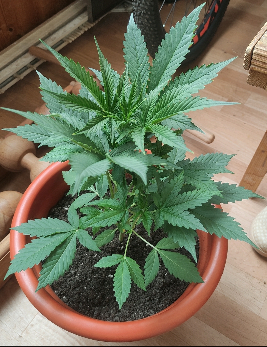 22 день от посадки семки в 10 литровый горшок. Растёт в боксе, под лэд фито лампой полного спектра 120 вт